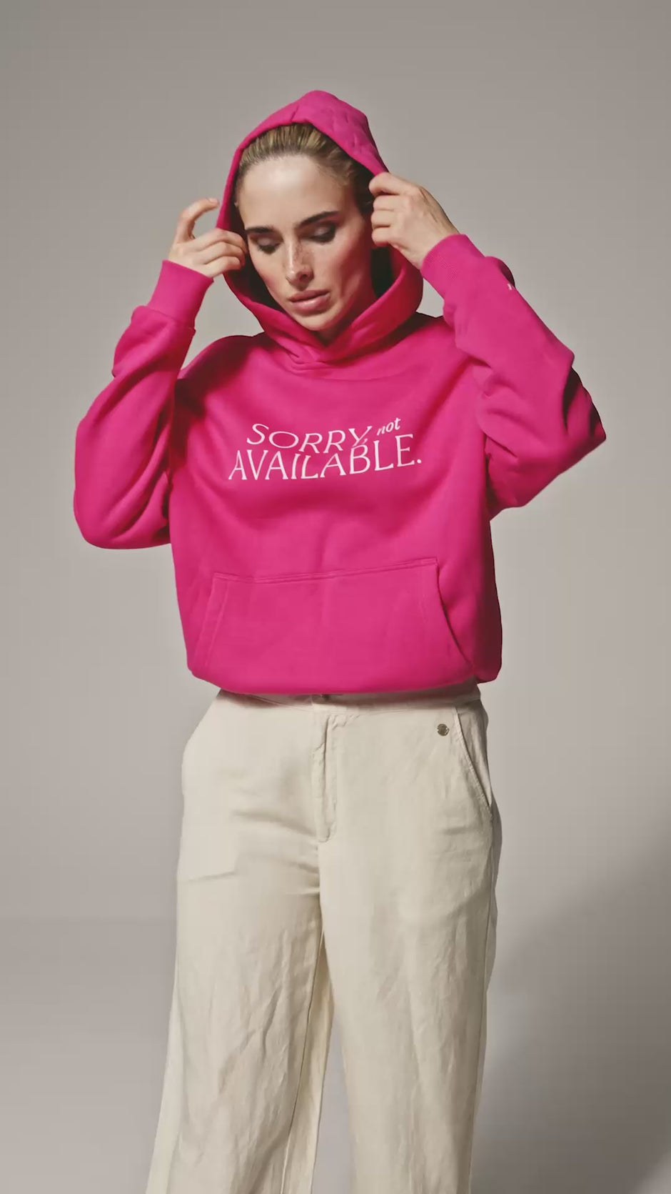 „SORRY, NOT AVAILABLE.“ war ursprünglich kein Mode-Statement, sondern ein alltäglicher Gedanke. Ein Satz, der geblieben ist, weil er eine Energie trägt: das Bewusstsein, sich selbst zu wählen.